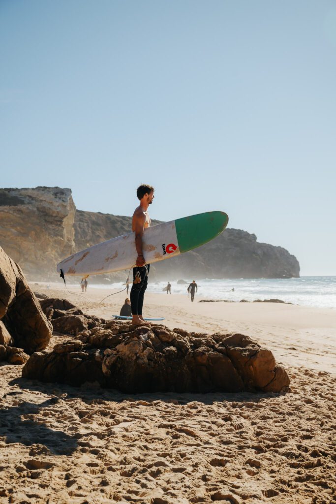 The consistent waves in the bay at Arrifana are perfect for both beginner and advanced surfers. With stunning views of the cliffs and a relaxed surf community, it’s an awesome spot for a surf lesson.